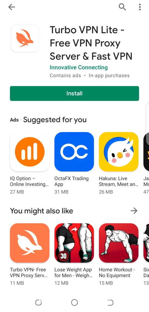 Neechy aik app mily ga apko Turbo vpn lite k nam se woh apne install kar leni hai aur connect kar lena hai.